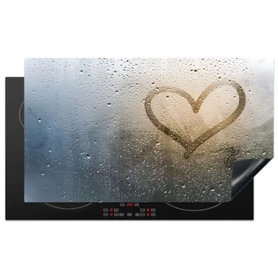 KitchenYeah© Induction Hob Protector Mat 20.5"x35.4" / 90x52 cm Cooker Top Protectors Cover Ceramic Covers Electric Hobs Vinyl Heart Condensation Water 3D