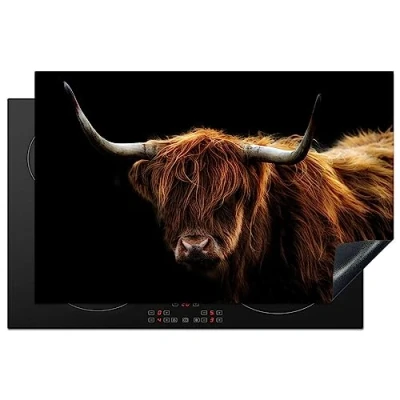 KitchenYeah© Induction Hob Protector Mat 20.8"x32.1" / 81.6x52.7 cm Cooker Top Protectors Cover Ceramic Covers Electric Hobs Vinyl Scottish Highlander Horns Black Animals Nature