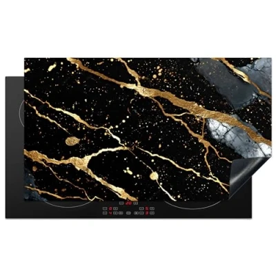 KitchenYeah© Induction Hob Protector Mat 20.8"x36" / 91.6x52.7 cm Stove Cap Top Cover Kitchen Cooker Covers for Electric Hobs Vinyl Marble Black Gold Texture