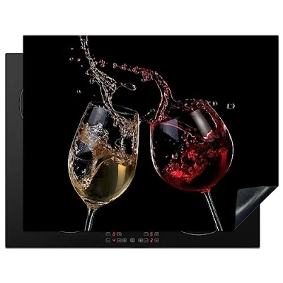KitchenYeah© Induction Hob Protector Mat 23.2"x30.3" / 77x59 cm Stove Cap Top Cover Kitchen Cooker Covers for Electric Hobs Vinyl Red Wine White Glass Black