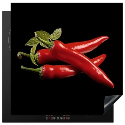 KitchenYeah© Induction Hob Protector Mat 30.7"x30.7" / 78x78 cm Cooker Top Protectors Cover Ceramic Covers Electric Hobs Vinyl Red Pepper Herbs Spices Black