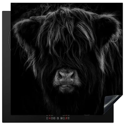 KitchenYeah© Induction Hob Protector Mat 30.7"x30.7" / 78x78 cm Stove Cap Top Cover Kitchen Cooker Covers for Electric Hobs Vinyl Scottish Highlander Cow Black White Animals