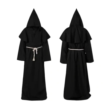 【Monk Costume Set】Monk Robe + Hooded Cloak + Cross + Drawstring. The hood and robe can be separated. You can take off the hood anytime when you need it. 【Suitable Size】There are three colours to choose from: red, brown and black. Each colour comes in 5 sizes: S, M, L, XL and XXL, please choose your size according to our size chart. 【High Quality Fabric】Made of durable polyester fibre, harmless to skin and health. The clothes are loose fitting and will not look bulky even if you wear multiple items underneath. 【Novel Design】The hat is designed to cover your face and create a sense of mysterious atmosphere. The drawstring at the waist makes it easy to put on and take off. Simple yet stylish, this unisex design is suitable for both men and women and recreates a mid-century vintage look. 【Ideal Gift】Mens fancy dress costumes adult are perfect for theatre costumes, carnival costumes, Halloween cosplay costumes, etc. It is also an ideal gift for family and friends.