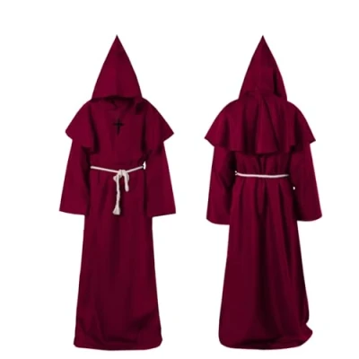【Monk Costume Set】Monk Robe + Hooded Cloak + Cross + Drawstring. The hood and robe can be separated. You can take off the hood anytime when you need it. 【Suitable Size】There are three colours to choose from: red, brown and black. Each colour comes in 5 sizes: S, M, L, XL and XXL, please choose your size according to our size chart. 【High Quality Fabric】Made of durable polyester fibre, harmless to skin and health. The clothes are loose fitting and will not look bulky even if you wear multiple items underneath. 【Novel Design】The hat is designed to cover your face and create a sense of mysterious atmosphere. The drawstring at the waist makes it easy to put on and take off. Simple yet stylish, this unisex design is suitable for both men and women and recreates a mid-century vintage look. 【Ideal Gift】Mens fancy dress costumes adult are perfect for theatre costumes, carnival costumes, Halloween cosplay costumes, etc. It is also an ideal gift for family and friends.