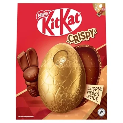 Milk chocolate egg including cereal and wafer pieces with 2x full size Kitkat bunnies Crispy Pieces Insides Suitable for vegetarians Have a break, have a KitKat Part of the innovative 'Breaks for Good' programme