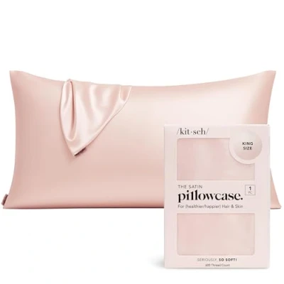 Kitsch 100% Satin Pillowcase with Zipper, Softer Than Silk for Hair & Skin, Cooling Pillow case, Case Cover (King (1 Pack), Blush)