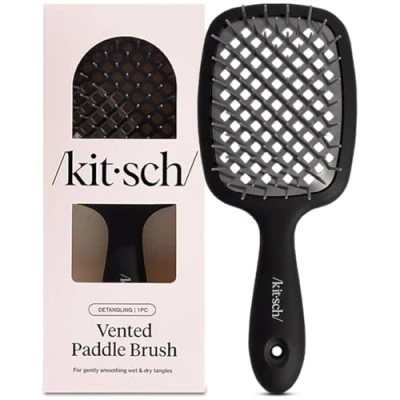 HIGH-QUALITY & DURABLE DESIGN FOR LONG-LASTING USE: Crafted with premium materials, a wide paddle brush head, a sturdy ergonomic handle, and resilient bristles, the Kitsch Hair Detangler Brush is built to last, providing reliable, exceptional durability and long-term value for everyday use. Its lightweight design reduces hand fatigue, making it easier to hold and control, while also being gentler on hair. The lightweight nature of the brush minimizes breakage and split ends, offering a stress-free brushing experience compared to heavier brushes EFFORTLESS DETANGLING & ANTI-FRIZZ: Say goodbye to stubborn knots with the specially designed bristles of our blow dry brush that glide smoothly through knots and tangles without pulling or causing pain. It also reduces static and frizz for sleek, manageable hair suitable for all hair types, making hair brushing a breeze every time COMFORTABLE & GENTLE ON SCALP: Enjoy a soothing scalp massage with gentle yet effective bristles of Kitsch Detangling Brush, while the ergonomically designed handle ensures a comfortable grip reducing hand fatigue during extended brushing sessions. The wet hair brush detangler is perfect for managing tangles in the shower as a pre-brush step, giving you hassle-free hair care EASY TO CLEAN & MAINTAIN: The innovative vent cushion design of our vent brush helps reduce drying time and minimizes heat damage from blow drying. Vented brush design also minimizes debris buildup, especially when paired with the Kitsch Hair Brush Cleaner for effortless maintenance, making cleaning quick and hassle-free to keep your brush pristine and ready for use. PORTABLE STYLISH DESIGN & THOUGHTFUL PACKAGING: Compact and lightweight travel hair brush, a perfect addition to your travel essentials for a smooth and frizz-free hair wherever you go. Available in a variety of designs and colors, the Kitsch Detangle Brush comes in a thoughtful packaging making it an ideal gift for birthdays, holidays, or special celebrations for men, women, and kids. PERFECT GIFT FOR HER: These stylish hair accessories for women is an ideal teen girl gifts trendy stuff for holidays, birthdays, or any special occasion. A chic mix of trendy style and everyday practicality, they effortlessly elevate any outfit. Perfect for stocking stuffers, gift sets, or daily wear, these must-have accessories are loved by women and teen girls of all ages.