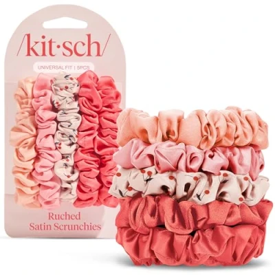 Kitsch Satin Scrunchies for Women No Crease Hair Ties Girls All Types and Textures, Perfect Day or Night Assorted Cherry Blossom, 5pcs