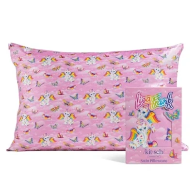 Kitsch x Lisa Frank Satin Pillowcase with Zipper for Hair & Skin, Softer Than Silk Pillow Cases Queen, Wrinkle Free, Smooth and Cooling Covers Standard/Queen Size 19x26 Angel Kitty