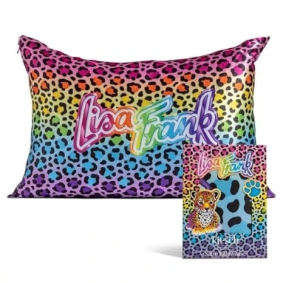 Kitsch x Lisa Frank Satin Pillowcase with Zipper for Hair & Skin, Softer Than Silk Pillow Cases Queen, Wrinkle Free, Smooth and Cooling Covers Standard/Queen Size 19x26 Rainbow Leopard