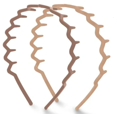 Kitsch Zig Zag Headband, Classic 90s Headbands for Men & Women, Hair Bands, Recycled Plastic Women with Teeth, Wavy Lightweight Durable 2pc (Neutral)