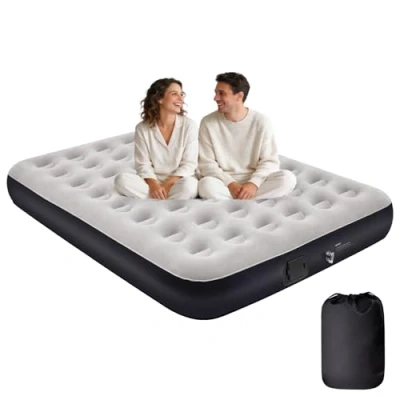 Kitxedas Air Bed Double with Built in Pump, Inflatable JUST One click, Electric Mattress Self Guest for Camping/Home, 198x152x25cm
