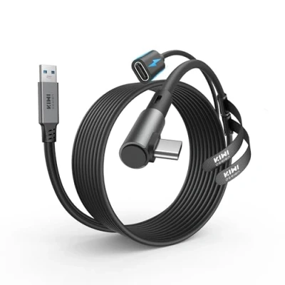 Fast Charge Chip: The KIWI design link cable with charging incorporates a separate 18W charging port, featuring an upgraded internal board compatible with Meta Quest 3S/3/2 for seamless in-game charging, Use only with official or higher-power chargers, Not for charging phones, tablets, or laptops 5Gbps Super Speed Link Cable - It is an USB3.2 Gen1 (USB3.0) cable that supports 5Gbps (Super Speed) transmission rate. The bandwidth can reach 2.5-3.2Gbps when connected to Quest via the link cable (subject to computer performance). Enjoy higher display resolutions and refresh rates supported by your PC, delivering high graphical fidelity and sharper visuals for your gaming journey Compatible with Quest 3S/3/2/1/Pro Accessories and Pico 4:Designed specifically for simultaneous charging and gaming with Quest 3S/3/2/Pro/Pico4 headsets, connect the USB A port to your computer and plug the original charger into the dedicated charging port to enjoy uninterrupted gameplay, It’s an essential accessory for Quest 3S/3/2/Pro/Pico4 The Lightest 5M Cable allows you to Move Freely - The 5M quest link cable is flexible and lightweight, providing you with free moves in games like Thrill of the Fight VR and Boneworks without worrying about the cable pulling at your head or disconnecting! It works with stability and safety Longer Life to Save Your Money - After undergoing 10,000+ insertion and extraction force tests, the USB-A and Type-C ports of this cable still successfully connect to the PC and Quest, which means that if you use this link cable 2 times a day, you can use it for at least 6 years