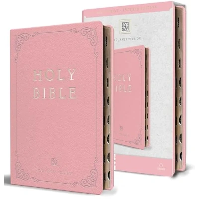KJV Holy Bible, Giant Print Thinline Large Format, Pink Premium Imitation Leather with Ribbon Marker, Red Letter, and Thumb Index: King James Version, ... Index (KJV Size Editions)