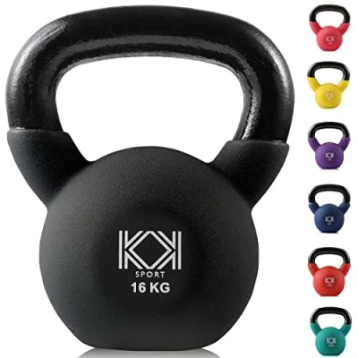 KK Kettlebells Cast Iron Neoprene Coated Weights Lifting Strength Training Home Gym Exercise (16kg)