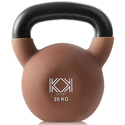KK Kettlebells Cast Iron Neoprene Coated Weights Lifting Strength Training Home Gym Exercise Brown (20kg)