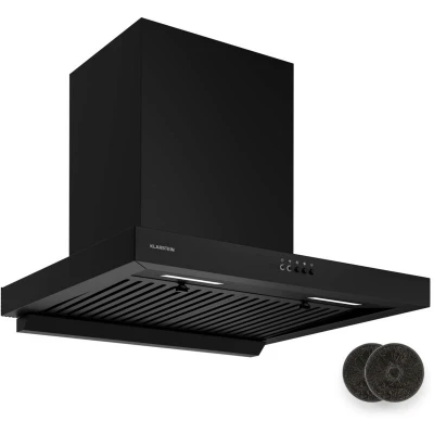 Klarstein AeroClean Cooker Hood 60cm Wall Mounted Extractor, 721 m3/h Boost, A++ Energy, LED Lighting 3800 4200 K, Quiet 52 dB, Black, Exhaust & Charcoal Filters