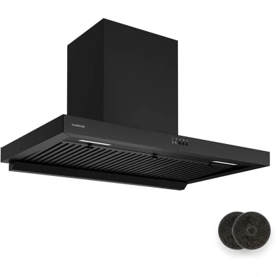 Klarstein AeroClean Cooker Hood 90cm Wall Mounted Extractor, 721 m3/h Boost, A++ Energy Efficiency, LED Lighting 3800 4200 K, Quiet 52 dB, Black, Push Button Control