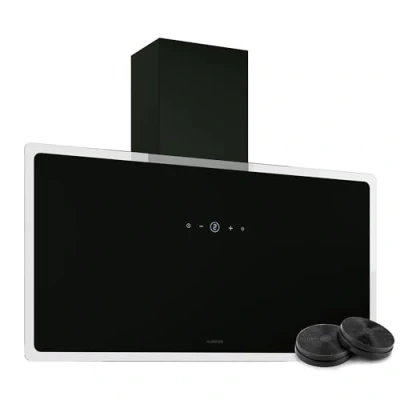 Klarstein AlizeEdge Wall Mounted Cooker Hood 90cm Flat Design, Touch Control, 487 m3/h Air Flow, A+ Energy Efficiency, Quiet 38 dB, LED Lighting, Black, Exhaust & Recirculation