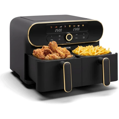Klarstein AuraAir Colour Touch Dual Air fryer 11L, 2 Drawer Fryer, 1700W, Display, 8 Programs, Non Stick, Overheat Protection, Auto Switch Off, Less Fat, Black/Gold