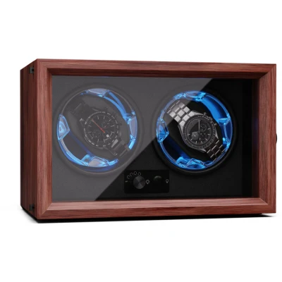 General description Protect and display your watches with the Klarstein automatic watch winder for 2 watches. This exquisite device ensures your automatic watches are fully wound and in peak condition for your next use. Featuring blue LEDs and an acrylic door, it stylishly showcases the craftsmanship of your timepieces while providing optimal care. Technical specifications Dimensions: approx. 24 x 16 x 15.5 cm (WxHxD) Weight: approx. 1.6 kg Rotation modes: 4 settings (650, 900, 1200, and 1500 revolutions per day) Operating noise: less than 10 dB Compatibility and accessories Memory foam cushion suitable for women's and men's watches Includes: 1 x watch winder, 1 x USB cable, 1 x cleaning cloth, multilingual user manual Installation Power supply via USB cable compatible with any USB power supply Usage Quiet operation with an ultra-quiet motor that turns watches clockwise, anti-clockwise, or in both directions Simulates wrist movement to continuously wind automatic watches Contributes
