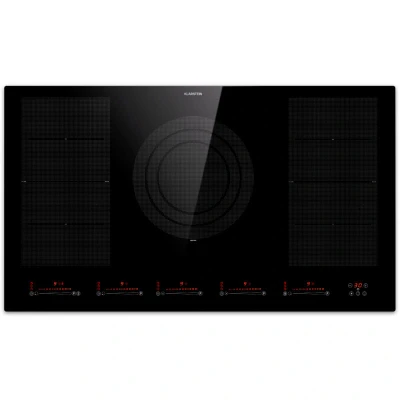 General description The Klarstein Ceramic Hob Cooktops offer a modern and efficient cooking experience with five cooking zones and a total output of 12600 watts. Featuring Smart Flex Technology, this induction cooktop allows for automatic temperature adjustment by simply sliding your cookware. The elegant glass ceramic surface not only enhances the aesthetic of your kitchen but is also easy to clean. With additional safety features and versatile cooking options, this electric cooker hob is perfect for both novice and experienced chefs. Technical specifications Total dimensions: approx. 90 x 52 x 6 cm (WxHxD) Minimum surrounding worktop width: 5 cm Minimum thickness of the worktop: 3 cm Minimum distance to kitchen slopes above: 76 cm Minimum clearance under the unit: 5 cm Air circulation space: 2 cm min. Cable length: approx. 100 cm Weight: approx. 12 kg Total power: max. 12600 watts (2 x 2000, 2 x 2800 & 2 x 3000 watts) Total power without booster: 9600 watts (2 x 2000, 2 x 1500 & 1 x