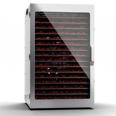 General description The Klarstein dehydrator is an efficient appliance designed for preparing healthy snacks and meals. It is perfect for drying fruits, vegetables, mushrooms, and meats, making it an excellent addition to a healthy diet, whether at work or during sports activities. Technical specifications Power: 1500 W Temperature range: 30-90 °C Timer: 0-24 hours Dimensions: 43 x 66.7 x 54 cm (WxHxD) Dimensions of insert: 40 x 0.1 x 38 cm (WxHxD) Distance between drying shelves: 3.5 cm Power cable length: 140 cm Weight: 21.4 kg Total drying area: 2.4 m² Number of shelves: 16 stainless steel grids Installation Includes a multilingual user manual for easy setup and operation. Usage Ideal for drying a variety of foods including fruits, vegetables, meats, mushrooms, and herbs. Features a touch control panel for easy temperature and timer adjustments. Dishwasher-safe stainless steel grids for easy cleaning. Other information Equipped with overheating protection for safe operation.