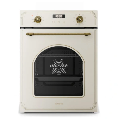 COMPACT & SPACE-SAVING DESIGN: At just 45cm wide, this built-in electric oven fits seamlessly into modern kitchens, providing maximum functionality without occupying much space. VERSATILE COOKING OPTIONS: This electric oven offers 9 functions, including turbo cooking and pizza mode, ensuring perfect results for every recipe in your built-in kitchen. EASY CLEANING: This electric oven features a steam-cleaning function and a removable double-glazed glass door, ensuring quick and effortless post-cooking cleanup. AMPLE CAPACITY: The 49-litre enamel cavity with 4 shelf levels offers plenty of space for family meals, making this built-in electric oven perfect for everyday cooking or entertaining. ENERGY-EFFICIENT PERFORMANCE: This electric oven boasts an energy class A rating and 2000W power, ensuring powerful cooking while minimising energy consumption. Perfect for any kitchen. The Klarstein Victoria Slim 45cm oven - the slim helper in the kitchen. Modern kitchens will love the