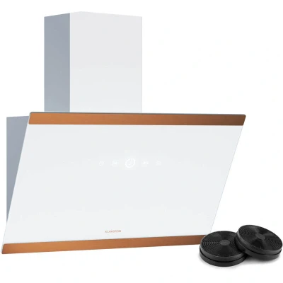 Klarstein FlashLine 60 Cooker Hood 60cm Kitchen Extractor, Touchscreen, 524 m3/h Air Flow, A++ Energy Efficiency, Quiet 34.5 dB, LED Lighting, White & Copper, Ducted Recirculating