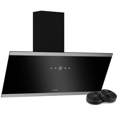 Klarstein FlashLine Cooker Hood 90cm Angled Extractor Hood, Touch Screen Control, 524 m3/h Air Flow, A++ Energy Efficiency, LED Lighting, Quiet 34.5 dB, Black, Ducted & Recirculating