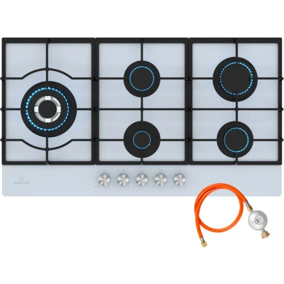 Klarstein Ignito Chef Edition Gas Hob 5 Sabaf Burners, Tempered Glass, 3.6kW Output, SnapJetIgnition, Wok Compatible, 90cm Wide, Easy Clean, For