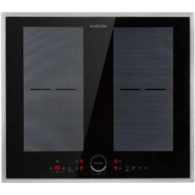 ManoManoGeneral description This Klarstein Induction Hob combines style and functionality, featuring a powerful 7000 watts heating capacity. With its innovative ThermoBoost function, you can quickly reach high cooking temperatures, making it ideal for gourmet cooking. The sleek glass ceramic surface with a stainless steel frame adds a touch of luxury to any kitchen. Technical specifications Total output: 7000 watts Cooking zones: 4 (2 x 2000 watts and 2 x 1500 watts) Boost power: up to 2800 watts Overall dimensions: 59 x 5.8 x 52 cm (WxHxD) Installation dimensions: 56 x 5.2 x 49 cm (WxHxD) Cable length: approx. 1.0 m Weight: approx. 9 kg Installation The necessary materials for installation in the worktop are included with the delivery, ensuring a straightforward setup process. Usage The Klarstein Induction Hob features a smart touch control panel with a digital display, allowing for easy operation. It includes a timer of up to 99 minutes for each hob, which can either switch off the hob or