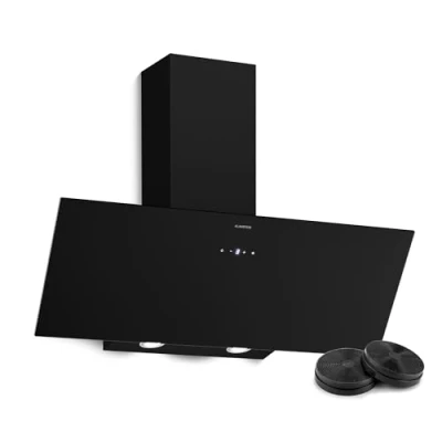 Klarstein Laurel Angled Cooker Hood 90cm Glass Design, 417 m3/h Airflow, A+++ Energy, LED Lighting, Touch Control, 3+Boost Speeds, Recirculation & Exhaust, Extractor Hood, Black