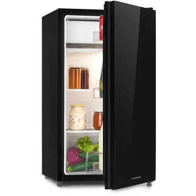 Klarstein Luminance Frost Fridge Freezer Combination Free Standing Fridge, Glass Front, Low Noise, Approx. 45 x 84 48.5 cm (WxHxD), 91 Litre Total Volume, Black