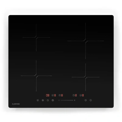 Klarstein PowerGlide Induction Hob 4 Zone Cooker, 7800W Boost, Slider Control, Timer & Child Lock, Residual Heat Indicator, 60cm Sleek