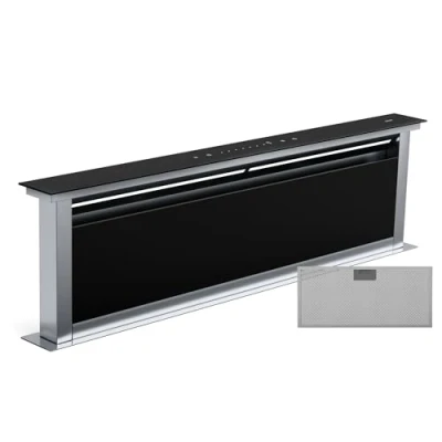 Klarstein Royal Flush Eco Downdraft Cooker Hood A++ Energy Efficient, 842 m3/h Airflow, Quiet 70 dB, Touch Control, 9 LED Colours, Wall Mounted, Recirculation Mode, Stainless Steel