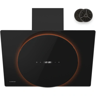 IMPRESSIVE DESIGN: The round glass dome with LED lighting resembles a solar eclipse, giving your kitchen a modern look with this stylish LED cooker hood. HIGH PERFORMANCE AND EFFICIENCY: This cooker hood boasts a maximum air extraction rate of 600 m³/h and energy efficiency class A, keeping your kitchen odour-free and saving energy. COMFORTABLE CONTROL: Easily manage all functions with the user-friendly touch control and digital clock, making this cooker hood a breeze to operate in any kitchen. FLEXIBLE USE: This cooker hood offers versatile functionality with both extraction and recirculation modes. It includes an activated carbon filter for efficient kitchen ventilation. PREMIUM FILTER TECHNOLOGY: The five-layer aluminium grease filter and activated carbon system in this cooker hood ensure clean air and easy maintenance in your kitchen. The Klarstein Total Eclipse cooker bonnet not only brings fresh air into your kitchen, but also an impressive design. The central glass dome with
