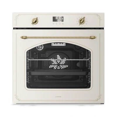 MULTIPLE COOKING MODES: With 11 operating settings, this electric oven adapts to every recipe, making it easy to prepare a variety of dishes in your kitchen. VINTAGE STYLE: Classic Victorian-inspired details give this electric oven a timeless retro look, making it a stylish centrepiece for any kitchen. ENERGY EFFICIENT: This built-in oven features energy efficiency class A, helping you save on electricity while enjoying powerful, reliable cooking performance. SIMPLE OPERATION: Effortlessly adjust your electric oven settings with intuitive rotary knobs for quick, hassle-free cooking every time. EASY CLEANING: The pyrolysis function in this electric oven burns off residue, leaving only a small amount of ash that you can simply wipe away for a spotless built-in oven with minimal effort.