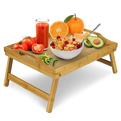KLASS Bamboo Bed Tray Table with Foldable Legs, Multipurpose Laptray Breakfast in Tray, Snack For Sofa, Laptop Stand & Serving