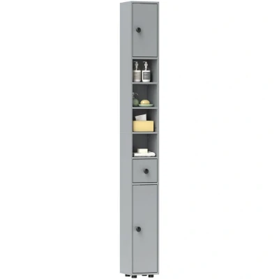 kleankin 180cm Tall Bathroom Cabinet, Slim Storage Cabinet with 4 Open Shelves, 2 Door Cupboards and Adjustable Grey
