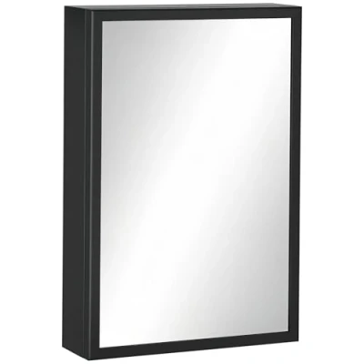 General description Save space with the kleankin Wall Mounted Bathroom Cabinet featuring a mirror and storage shelves. This cabinet provides a designated spot for your bathroom essentials, accommodating taller items such as face creams with pumps and makeup tubes. The design maximizes bathroom storage while ensuring a sleek appearance. Technical specifications Colour: Black Material: Stainless Steel, Aluminium, Glass Overall Dimensions: 40W x 12D x 60H cm Mirror Size: 35.5W x 55.5H cm Cabinet Inner Size: 39.5W x 8D x 59H cm Weight Capacity: 15 kg (Total), 5 kg (Shelf) Item Label: 834-532V00BK Installation Wall-mounted design saves floor space No assembly required Usage Features 3-tier shelves with 15 cm height in-between to store taller beauty products and daily hygiene items Mirrored door allows for easy viewing while getting ready Cushioned rust-resistant stainless steel hinges ensure quiet and smooth door movement