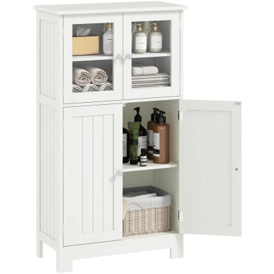 General description The kleankin Bathroom Floor Storage Cabinet is a versatile standing unit designed for both bathroom and kitchen use. It features a sleek design with doors that provide concealed storage, making it ideal for organizing various items while maintaining a tidy appearance. Other information