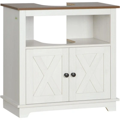 Maximise your bathroom storage with the Kleankin Under Sink Cabinet, an ideal solution for any bathroom setting. Featuring a clever 'U' shaped cut-out, this cabinet fits seamlessly under your sink, making use of often overlooked space. With this stylish and practical addition, you can keep your hygiene products, cleaning supplies, and towels neatly organized and easily accessible.