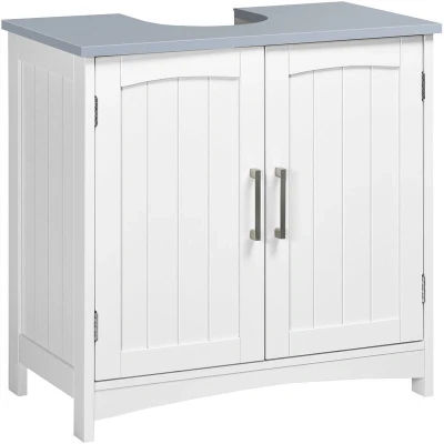 This Kleankin pedestal sink cabinet is the ideal solution for maximizing storage space in your bathroom. Perfectly designed to fit underneath pedestal sinks, this cabinet combines functionality with an elegant and clean aesthetics that complements any home decor style. Whether placed in your bathroom, living room, or laundry area, it ensures that your space remains organized and tidy.