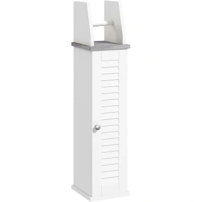 kleankin Slim Bathroom Floor Cabinet with Cupboard, Roll Holder and Adjustable Shelf, Toilet Storage Unit for Paper, Shampoo, White