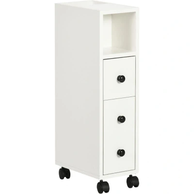 kleankin Slimline Bathroom Storage Unit w/ 2 Drawers Open Compartments Wheels Handles Freestanding Compact Home Office Furniture White