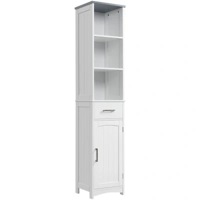 kleankin Tall Bathroom Storage Cabinet with 3 Tier Shelf, Cupboard, Drawer, Door, Freestanding Linen Tower, Slim Side Organizer, White