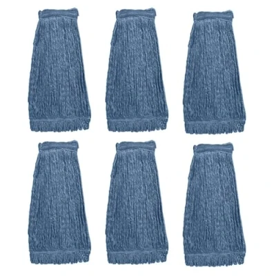 KLEEN HANDLER HEAVY DUTY Commercial Mop Head Replacement, Wet Industrial Blue Cotton Looped End String Cleaning Refill (Pack of 6)