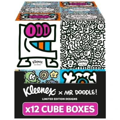 Kleenex x Mr Doodle Limited Edition Design Multipack Facial Tissues 12 Cube Tissue Boxes, Designed in Collaboration with Doodle, Made to Look Beautiful The Home.