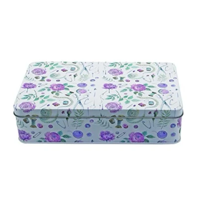 Very practical! 96 Piece Sewing Kit in Attractive Metal Tin Great quality gift idea for creative sewing enthusiasts Modern design in white with beautiful pattern Ideal for home or travel Includes universal sewing thread, star thread, roll measure, thimble, seam separator, pearl head pins, scissors, jeans buttons, sewing needles, pin cushion, shirt and blouse buttons, safety pins, snap studs, hooks, eyelets and needle threader